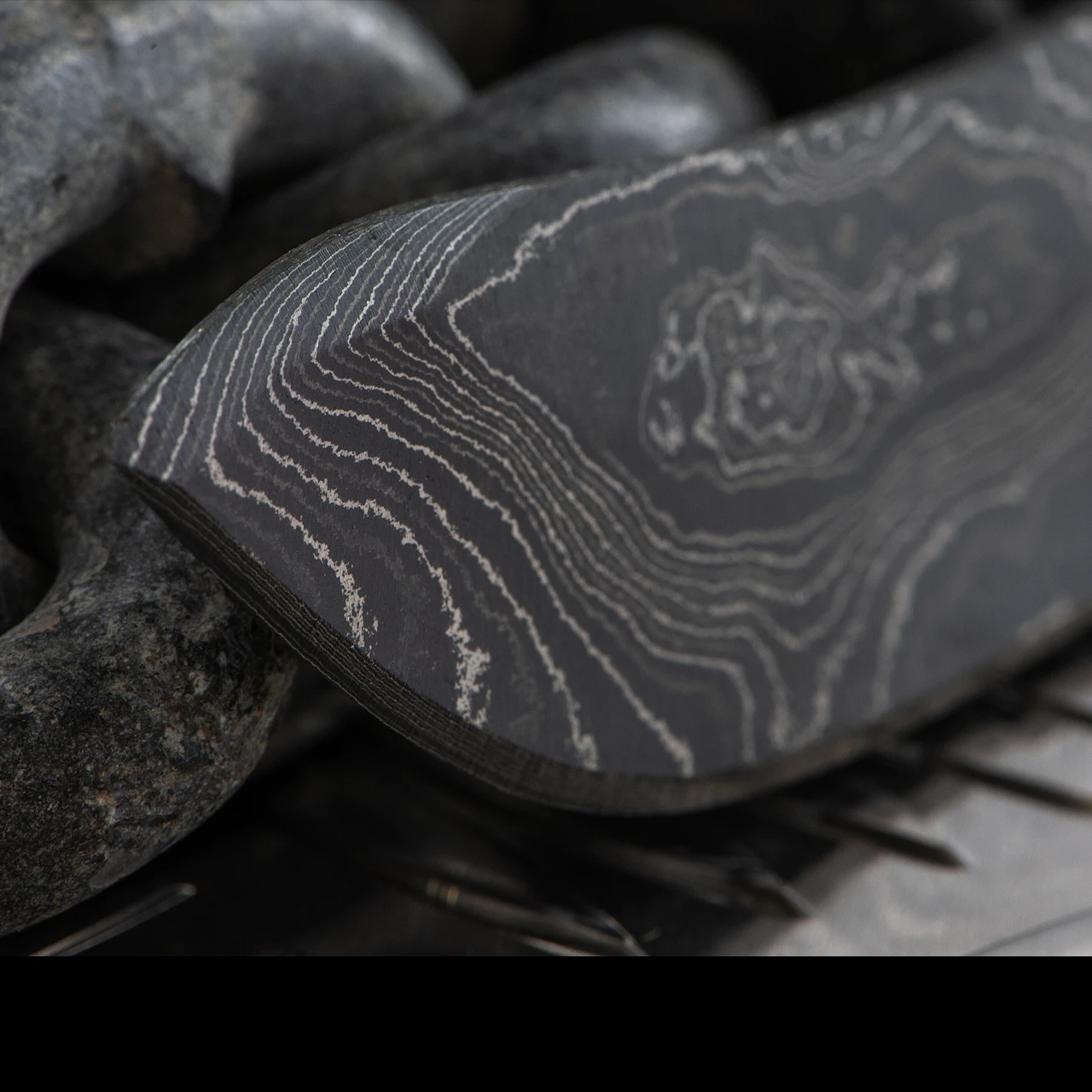 If you ever fancied making your own knife but don’t have a forge in the kitchen then now is your chance! These blade blanks have done all the hard work and are ready for blade scales of your choice to be attached. This version is stunning Damascus steel in a skinner shape.