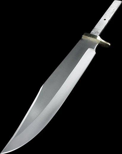 Bowie blade knife blank 15.5in in overall length and 10in stainless clip point blade. Features brass guard.