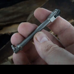 With the Boker Bronco these ambitious requirements were met in the following way: The CPM-3V was developed by Crucible Industries LLC – the specialist and worldwide market leader in powder metallurgical steels – to provide unprecedented shock-load tolerance, breakage elasticity and splinter resistance with a phenomenal edge retention and hardness of 62-63 HRC. These properties of the powder-metallurgical carbon steel were achieved, among other things, by a precisely adjusted chromium content of 7.5%. In this way, the positive properties of the alloying element Cr, such as the increase in wear resistance and hardenability, could be utilised while maintaining a fine microstructure. The universal wide drop-point blade with a high-set saber grind has always been the hunter’s preferred shape for both big and small game and is also suitable for both fine tasks such as stick feathering and for the more coarse, such as the obligatory batoning. The tang is continuous and protrudes a few millimetres from the end of the handle. This ensures maximum stability and the tang can also withstand powerful blows with a log or other object. A short part of the back of the blade forms sharp 90° edges on both sides for striking sparks from the included firestarter.