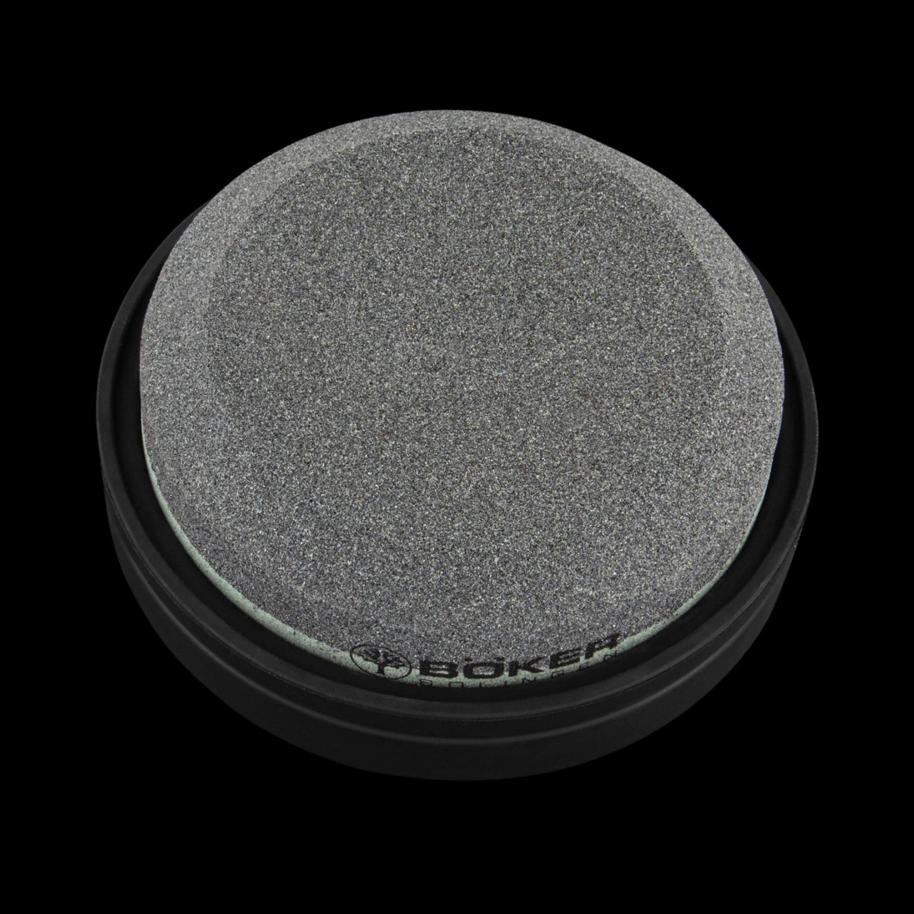 The Boker Puck Corundum sharpener is a combination sanding puck consisting of the tried and tested abrasive Corundum in both 200 grits and 600 grits. Both sides are suitable for wet and dry sanding and each has an effective working surface of 6 cm.