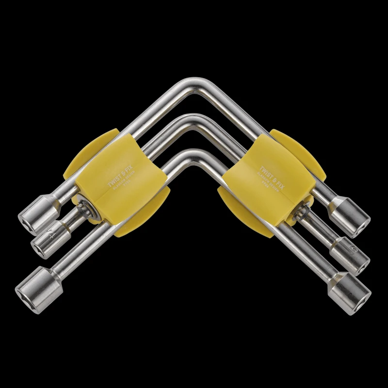 Designer Ryan Glasgow has always been fascinated by the simplicity and usability of a bent-pin coupler—a form of old mechanical linkage. In his shop in Portland, Oregon, he spent years tinkering, trying to apply it to a multi tool in a way that’s fun to use and highly useful. The end result: the Twist & Fix™. Instead of being housed in fixed, eternal bearings, each element in the tool set revolves around a central axle, lengthening the tool you need and keeping the others out of the way. They’re held together with a low-profile frame, snapping in and out with ease so your workflow remains uninterrupted.