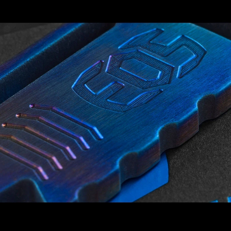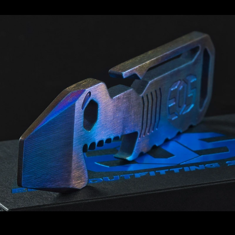 The TiShark is CNC machined from 6Al-4V titanium. It is 10cm (4″) long and 2.5cm (1″) wide and 0.36cm thick. It can be used as a pry bar or screwdriver when something needs a quick tweak but more importantly will open your beer in style! There’s a quarter inch wrench that is perfect for holding mini screwdriver bits, and it also has a pocket clip, so it’s ready when you are. Once you have an EOS TiShark, you won’t be able to live without it. This version of the TiShark is flame treated by hand to a brilliant colour pattern that is unique to each piece.