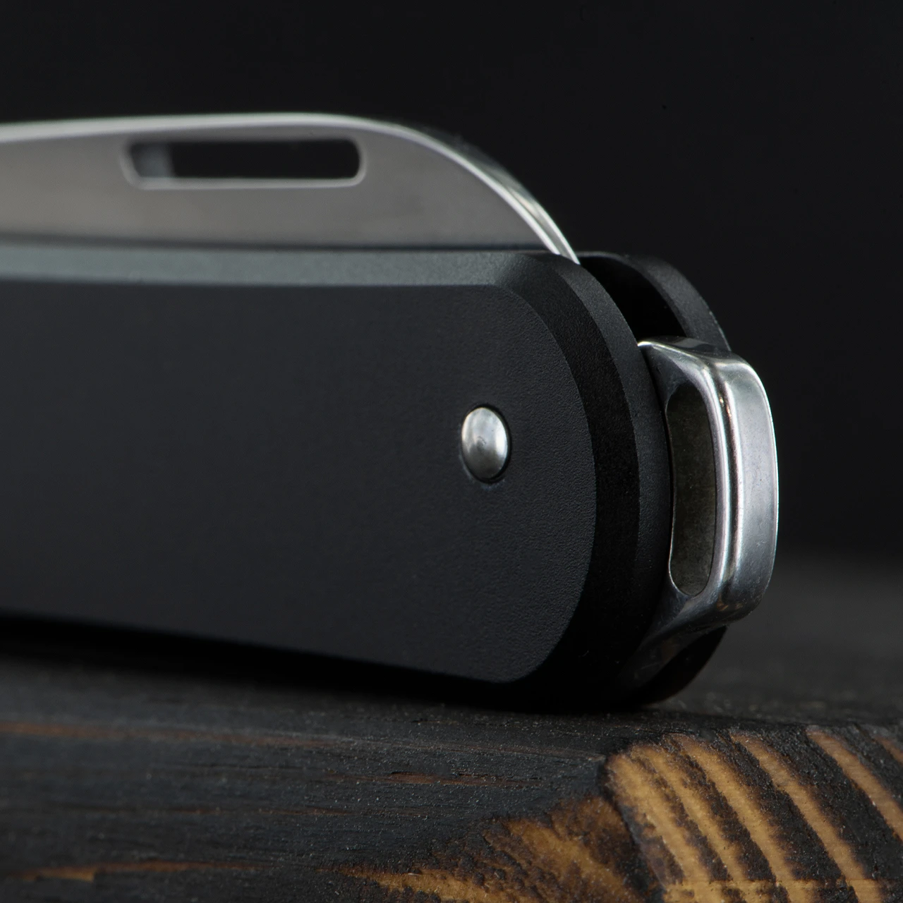 This version uses an aluminium handle in a choice of colours and has a stout little sheepsfoot blade. Pop one on your keys with the keyring attached and go about your day!