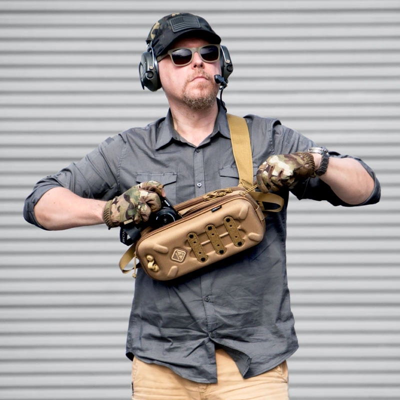 The 3 pack divisions are designed for a small camera like the Sony RX100, batteries, mini tripod, memory cards, power banks, cables, wallet, phone, pens, etc. Being so camera-friendly, it comes standard with the patented Hazard 4® photo-d-ring, allowing you to attach any camera or q.d. to the 2” strap tip like a retainer leash. Retention is guaranteed by the patented roto-locking buckle.