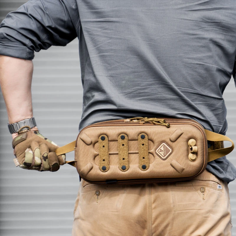 Hazard 4’s unique molded shell protects the contents and has one patented Hard-Point® connector pad for attaching optional loops, lights, etc. The shell also hosts the patented hard-molle military modular webbing for mounting extra pouches, tools, etc., velcro patches/i.d. windows and ¼ 20” screw gear.