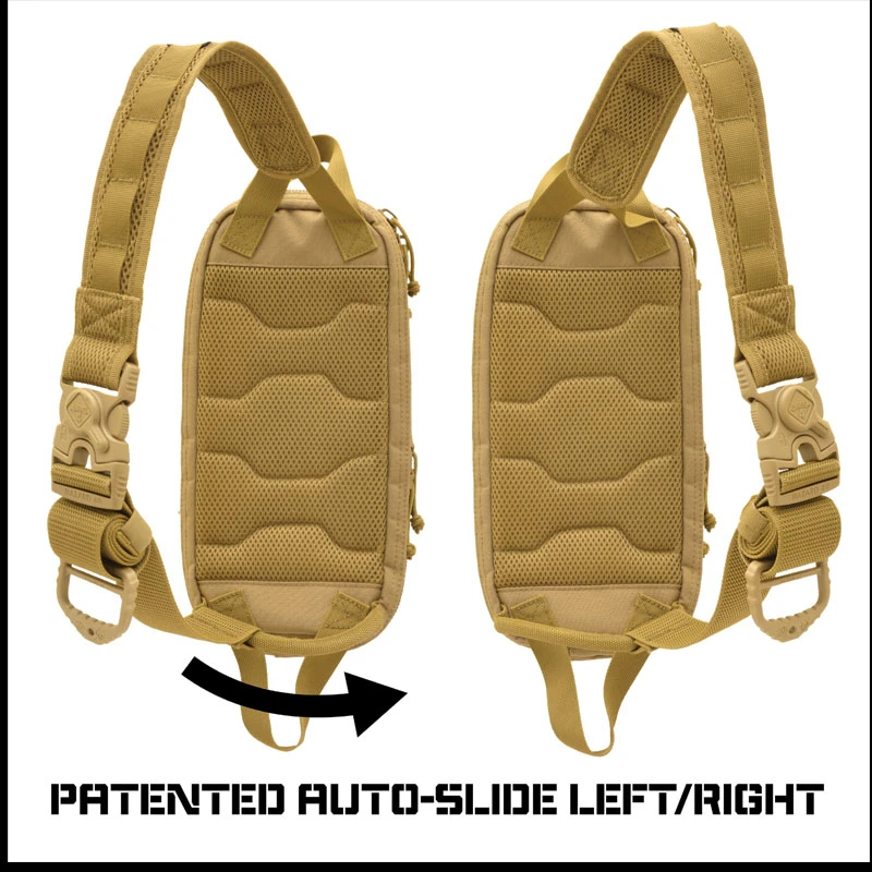 - Ambidextrous use on either shoulder with patented auto-shift strap