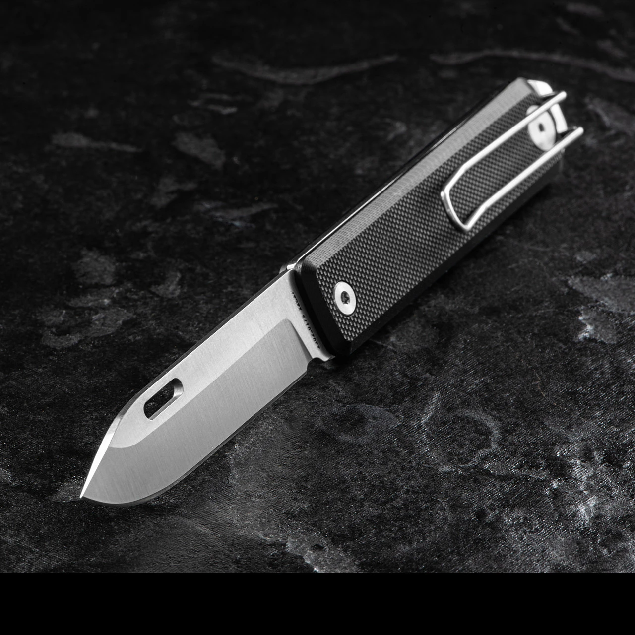 This version of the Ellis Slim has black G10 handle scales. It features the same Swedish Sandvik 12C27 steel that is featured on the standard Ellis and Elko, and comes with a deep-carry wire clip as well as the “All-Things” scraper, flat-head screwdriver and pry bar. If you’re looking for truly minimal daily carry look no further than the Ellis Slim.