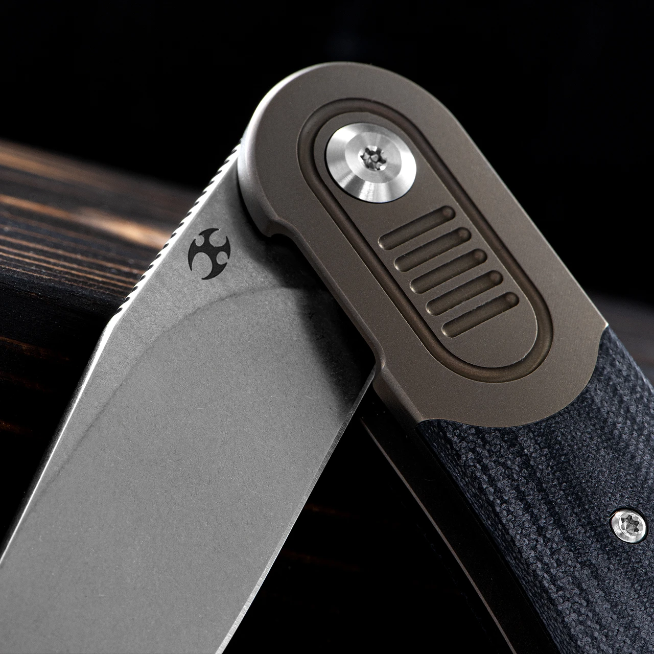 This version of the Reverie features a stonewashed S35V stainless steel blade with handsome curves and a very sharp edge out of the box. The handle is G10 with a subtly bronzed anodised bolster and frame as is the sturdy pocket clip.