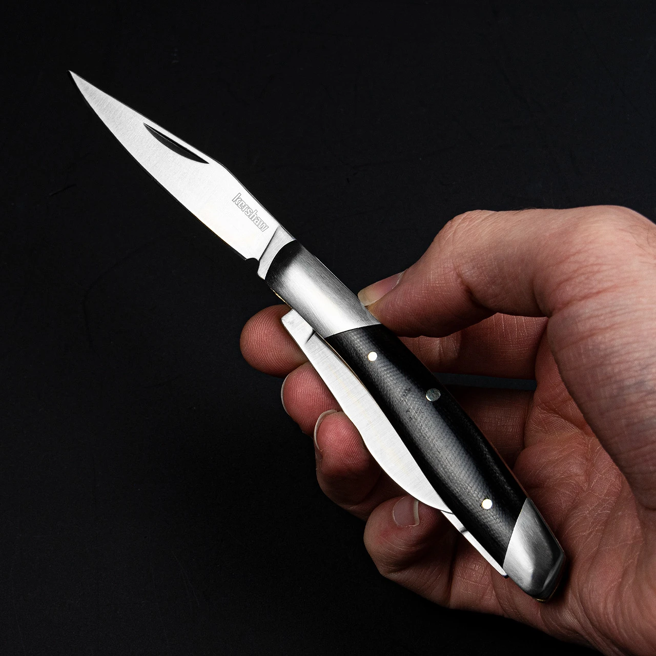 The polished micarta handle adds style and strength to the knife, along with steel bolsters and brass liners. It’s traditional, yes, but this three-bladed Kershaw stands out in the modern era with plenty of character.