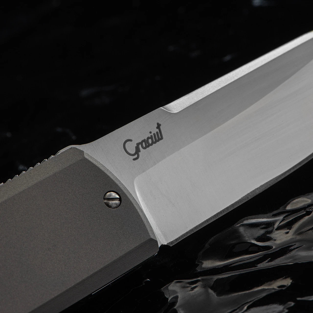 The thick set handle really fills the hand and is made from Titanium, one of the strongest materials known to man. It looks pretty cool too!