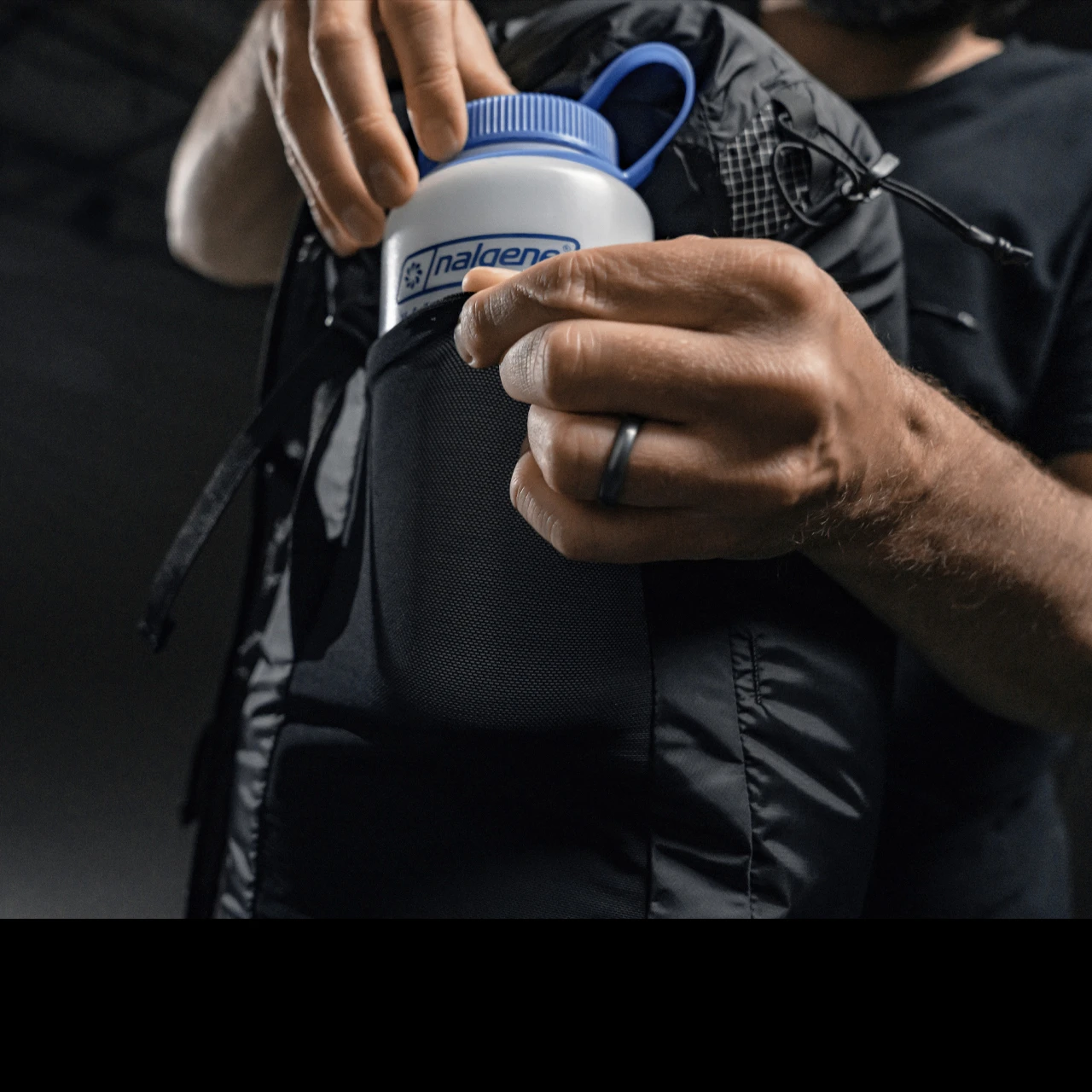 Ultralight UHMWPE-reinforced Robic® nylon delivers extraordinary durability, while the UTS coating, sealed seams, and rolltop closure yield a fully waterproof main compartment. Alpine-ready features include hydration compatibility, gear loops, and shockcord captures for tools.