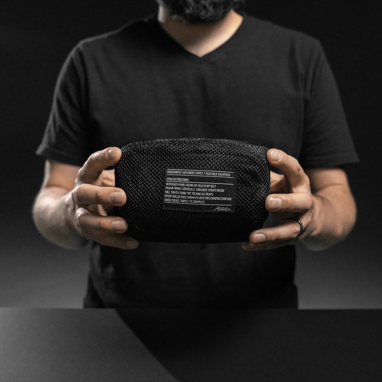Pocketed hip belt, sternum strap, and weight distributing shoulder straps provide an agile and balanced fit. Stow in the included mesh compression sack for travel.