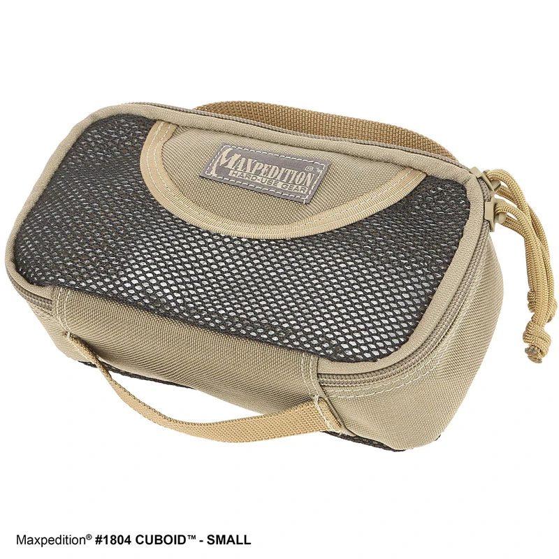 Cuboid organizers are soft containers excellent for travel and ideal for items that dont wrinkle when folded or rolled. Their mesh areas allow viewing of contents. They are specd to fit within each other. Two Medium CUBOID will fit into one Large CUBOID. Two Small CUBOID will fit into one Medium CUBOID. When not in use, they can be stored within each other to save closet space. Overall size: 7.5 x 4.5 x 2.5 Empty weight: 2.9 oz Colors: Black / OD Green / Khaki / Digital Foliage Camo