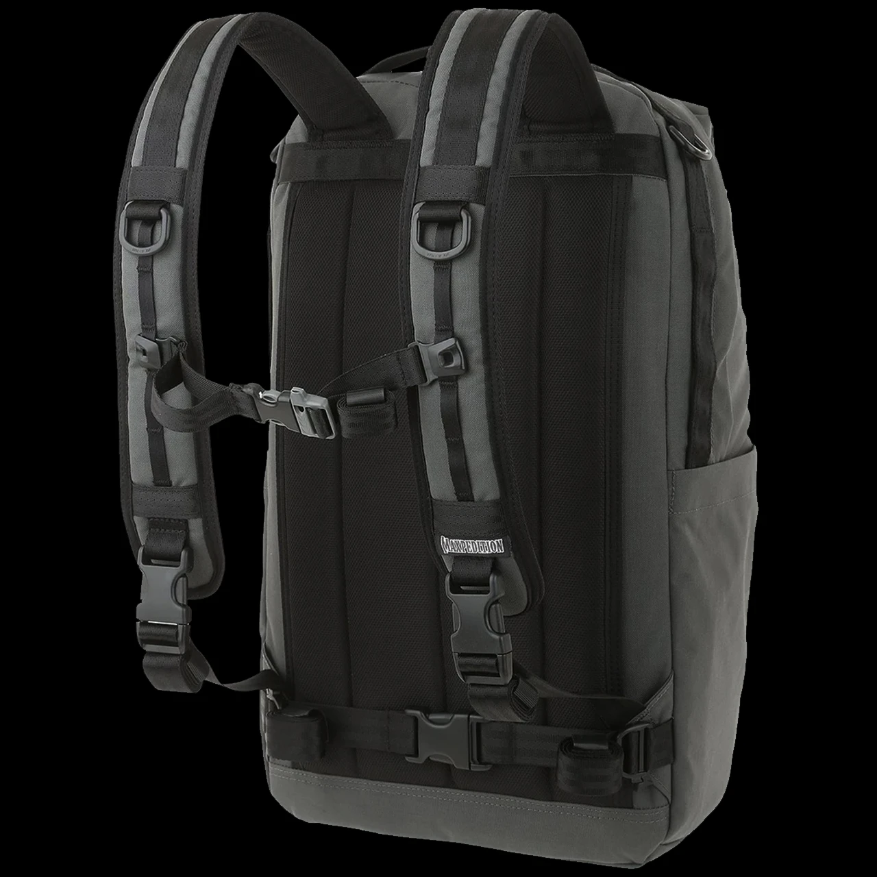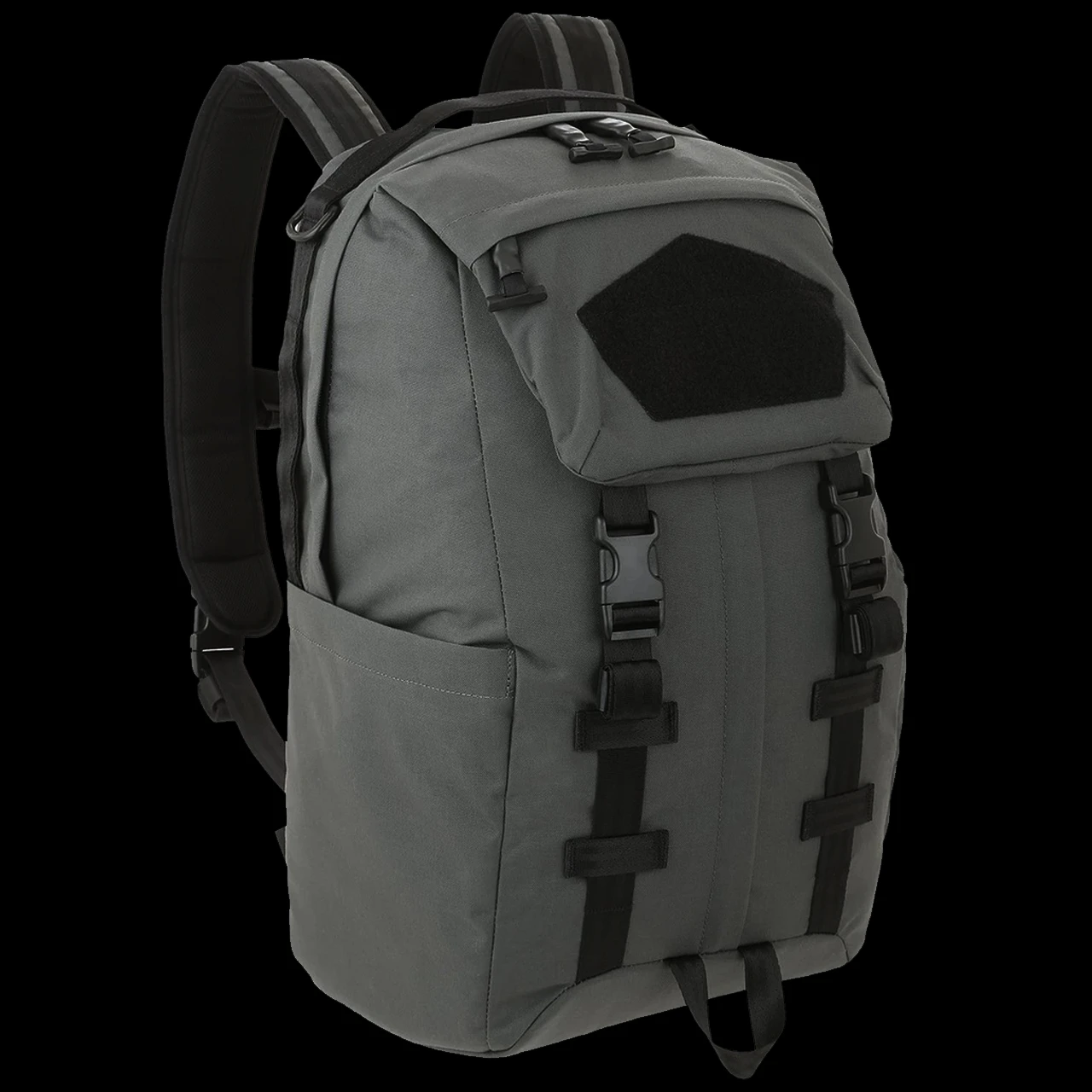 EDC meets bushcraft. The Maxpedition 26-liter TT26 backpack is designed for the modern woodsman, with two purpose-built entry points into the main compartment and all rain-flapped exterior zippers. The top zipper ensures quick access to key preparedness items from above. The full-length frontal zipper provides visibility to all areas of the main compartment, vital to an organized bug-out emergency kit. The TT26 is an ideal companion while hiking or traveling, yet great for urban applications. With its internal laptop sleeve it is well suited for everyday carry around the city.