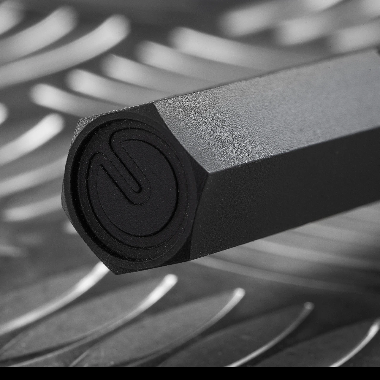 The cap is fastened with a strong magnet and features a pocket clip for easy attachment. The pen body is machined by aluminum, and the material of precision bits is upgraded to high-quality S2 Tool Steel.