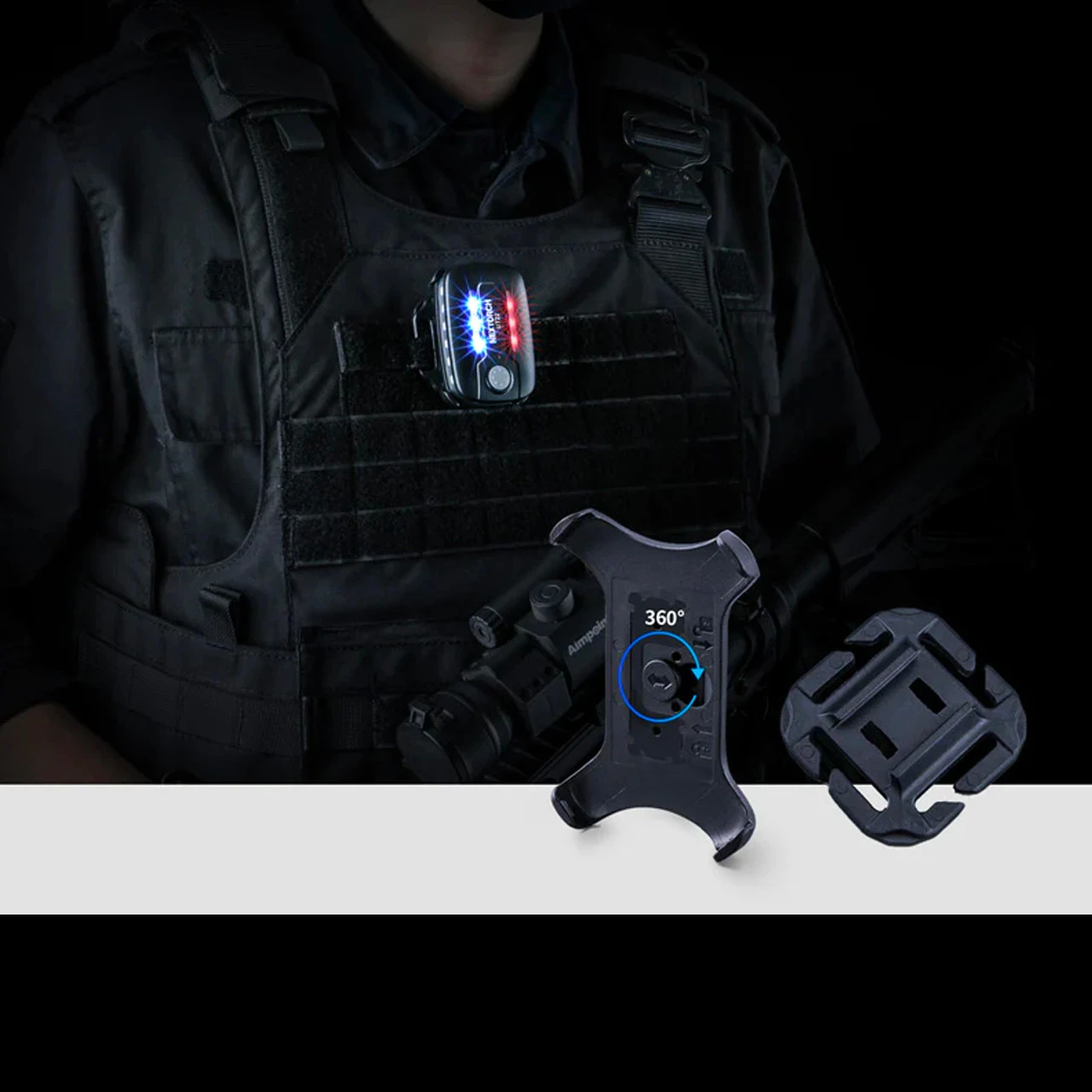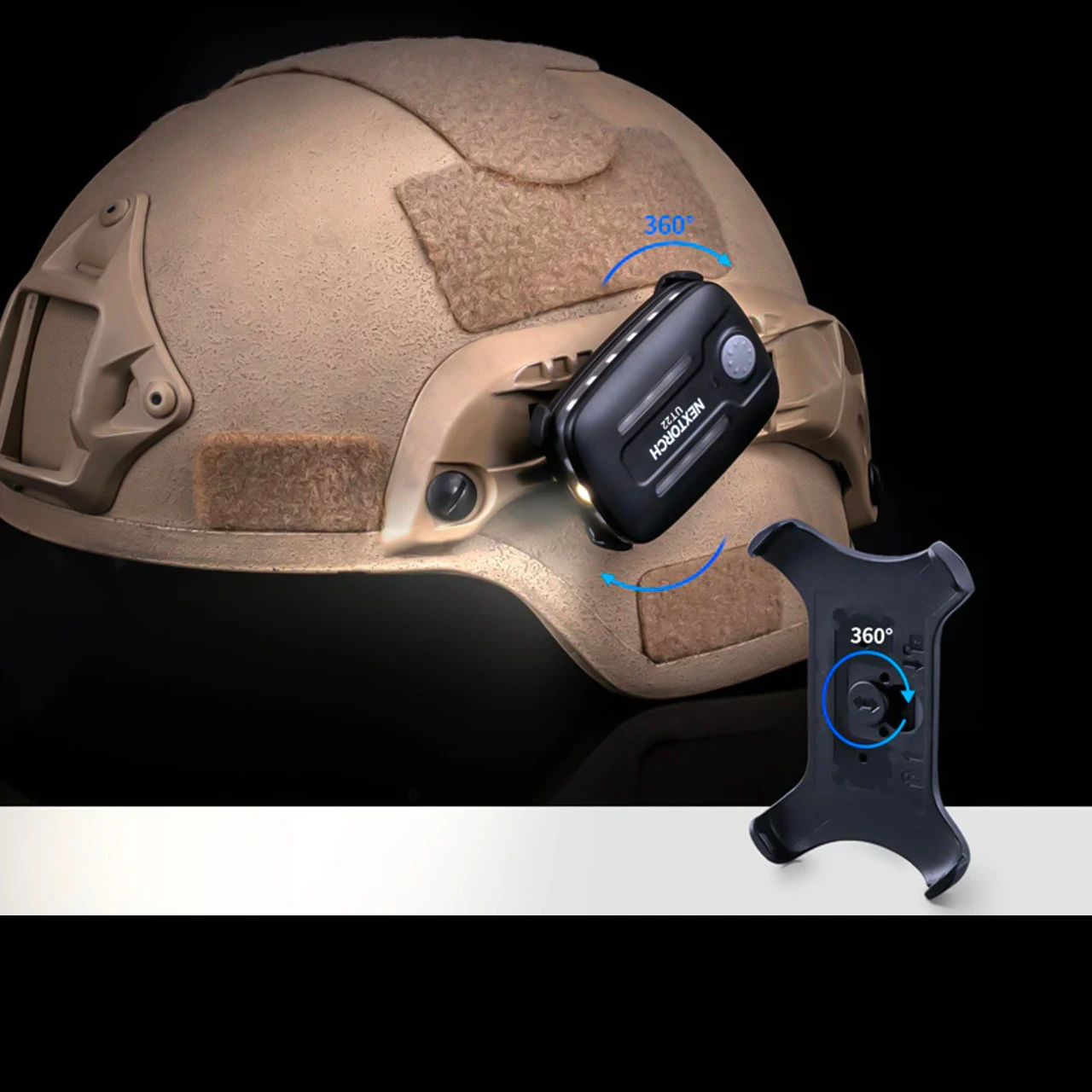 The Nextorch UT22 Multi-Function Warning Light is equipped with three different components, helmet clamp, webbing clip, and velcro, all able to be mounted on Ops-Core ARCs helmets, tactical vests, backpacks, and other tactical equipment.