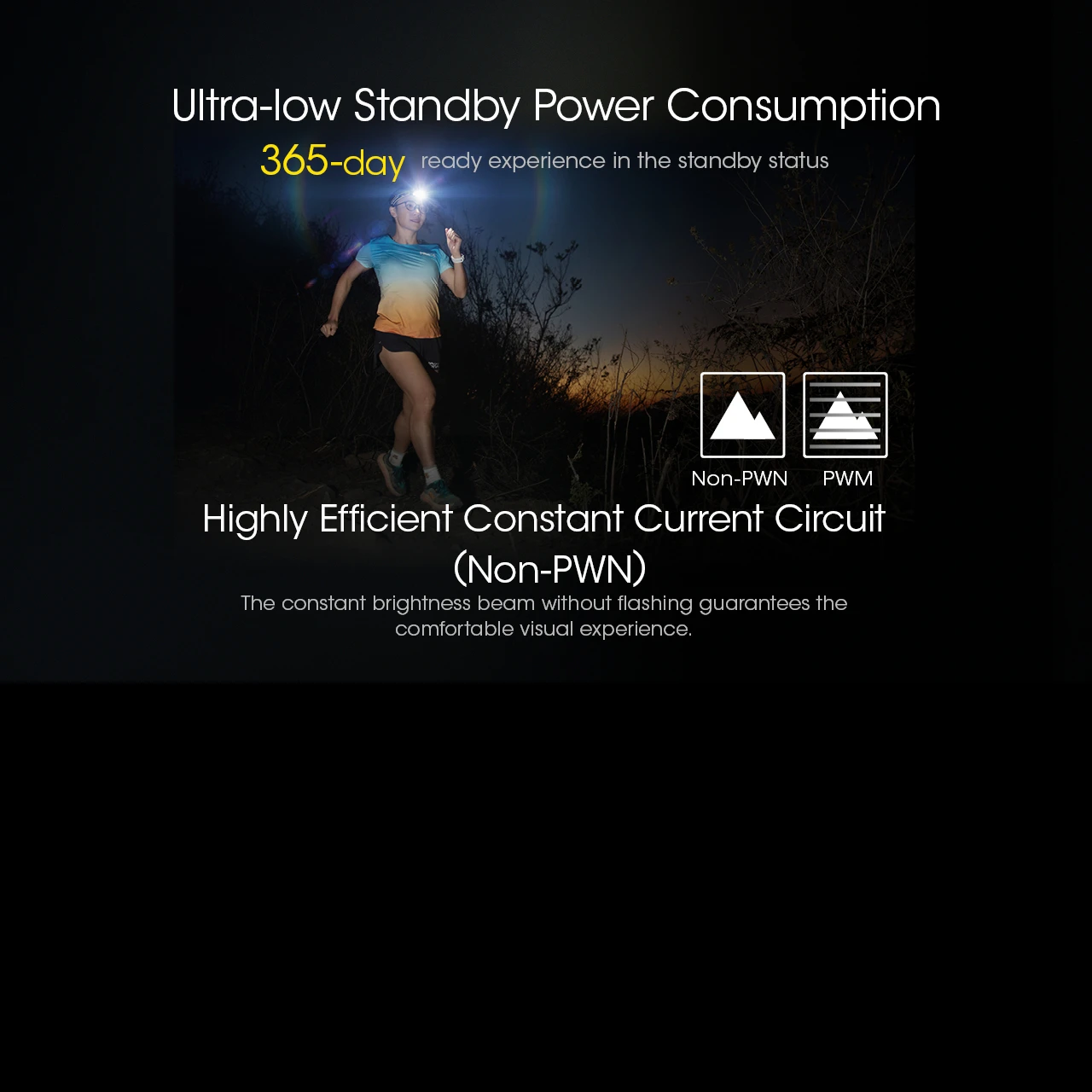 A unique feature of the Nitecore NU43 is the near-centre of gravity bracket. This design allows for a low rotational torque and short displacement when adjusting the angle of the head lamp, which greatly reduces the pressure on the forehead from the lower edge of the bracket, to achieve a more stable and comfortable wearing experience.