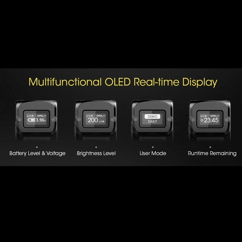 The torch has a demo mode which is ideal for everyday carry and short illumination and the daily mode for outdoor and long illumination. In demo mode, the light will automatically shut down if there is no operation in 30 seconds to prevent unnecessary power consumption. To cycle between the modes, long press both the power and mode button simultaneously.