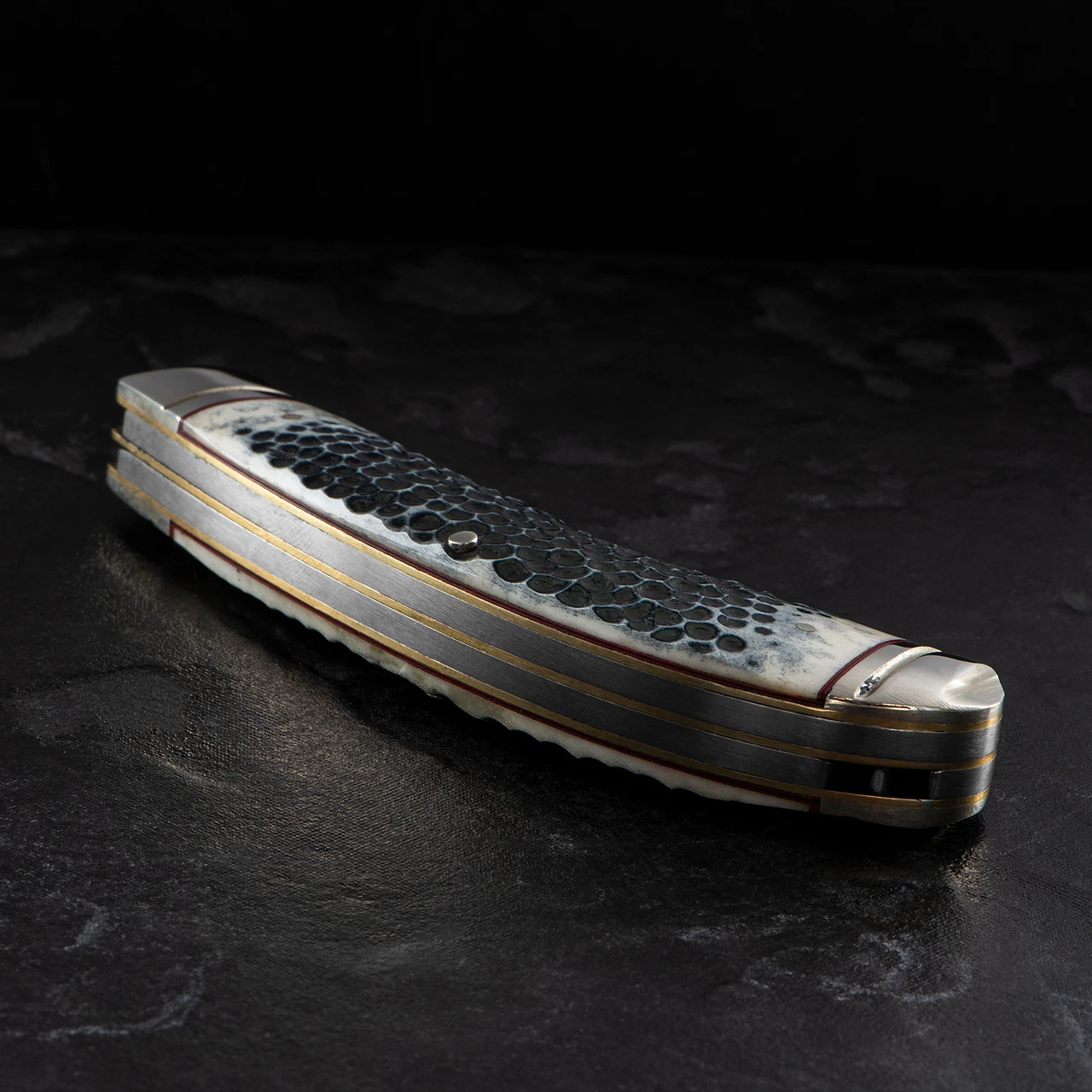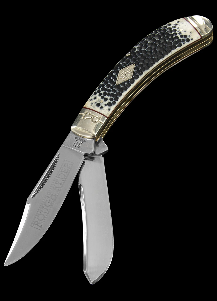Rough Rider’s Buck Shot line of traditional pocket knives has a very attractive and incredibly tough handle material.
