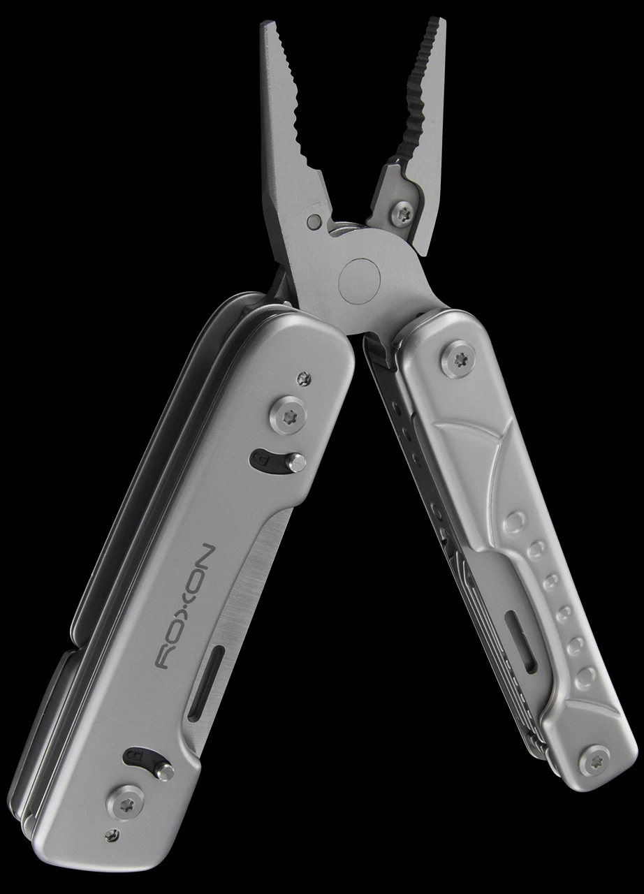 The Roxon Phantom multi-tool has it all! Pliers, scissors, replaceable knife blade, wire cutters, and the rest, all come in a compact package that unfolds like magic. It is tough, ergonomic and made with a high degree of quality. There are 15 tools in total: