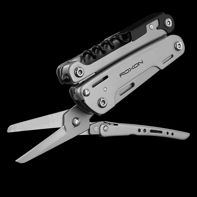The ROXON Storm S801S is a multi-tool packed with extremely useful features for the outdoors, work or at home. Boasting 16 tools in total it will quickly become your go to tool for all your toughest jobs. One of its many stand out features is the large scissors. Multi-tools of this type generally have small scissors which struggle to take on anything larger than your nails, the S801S however will easily take on large areas of fabric or even small branches. It is supplied with a Nylon belt pouch and a set of screw and Torx bits.