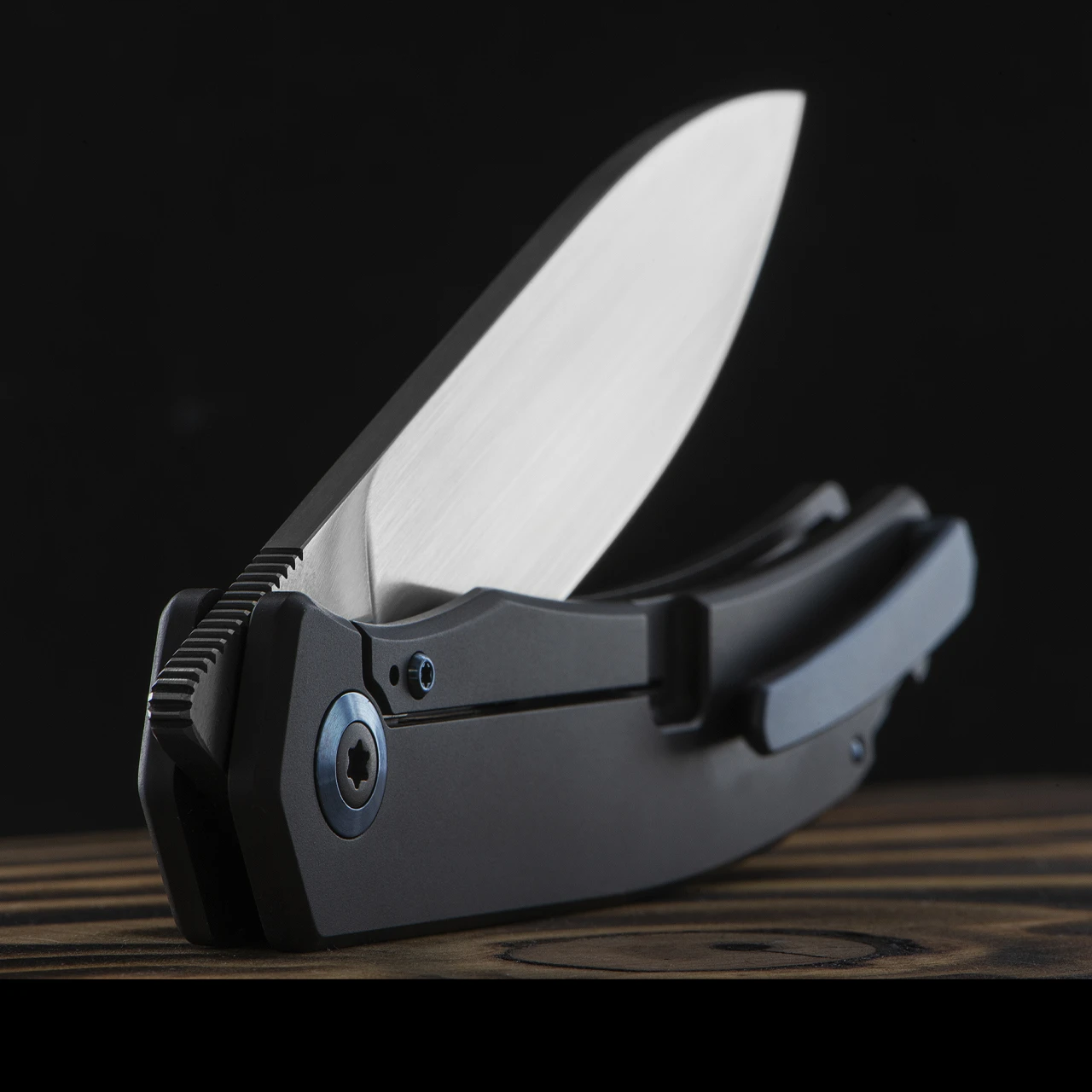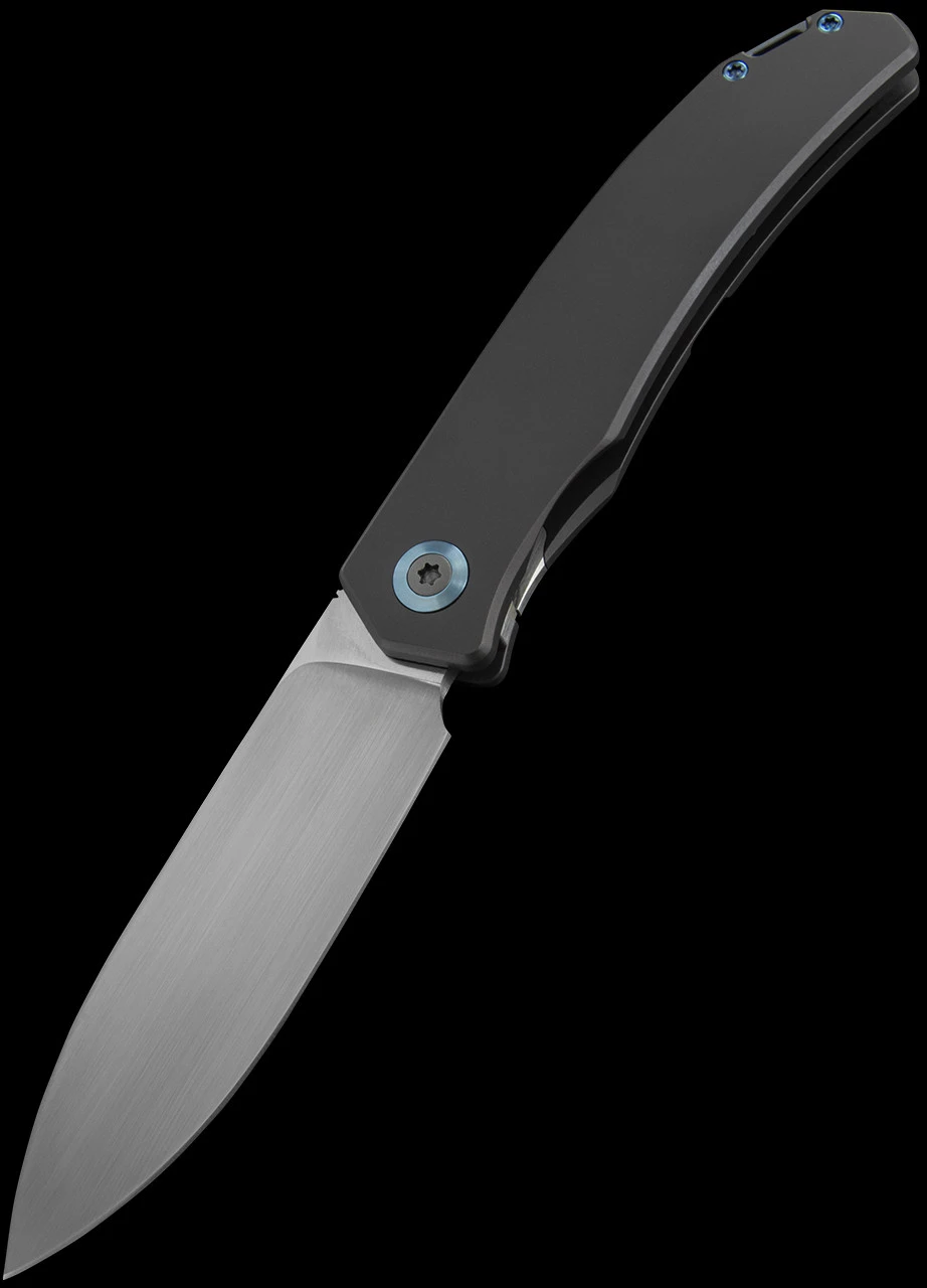 The Urban XL model features a M390 stainless steel blade with an exceptionally smooth opening thanks to the ceramic ball bearing pivot. It locks securely into place with a frame lock mechanism cut into the handle. The handle is Grade 5 Titanium with a blue anodised Titanium pocket clip attached. The hardware is polished blue anodised Titanium.