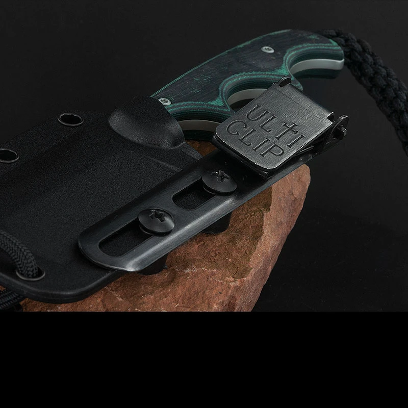 The Ulticlip Slim 3.3 gives your knife sheath an extra level of carryability! It has a dual slotted mounting area that allows for 3.81cm hole spacing. The Slim 3.3 is slightly over 1.27cm wide making it ideal for knife sheaths or other narrow applications.
